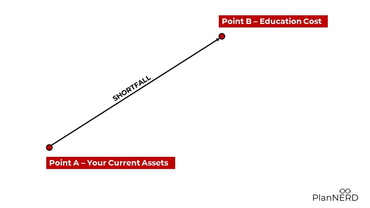 Now you know how much is needed to reach point B (cost of education), to calculate how much you need to set aside every month to cover the shortfall, you will also need to know how much you currently have, point A.